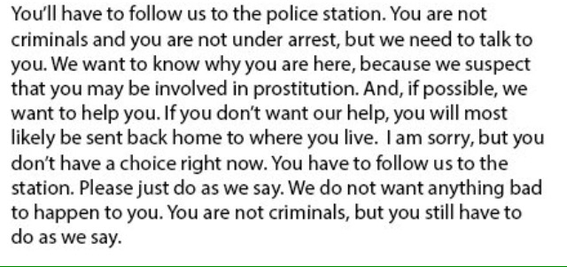Pro tip: ask anyone with a precarious immigration status in your country whether that sounds like a request to voluntarily assist with a police investigation. Or not.